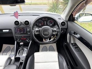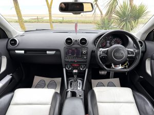 18″ Alloy Wheels, LED Daytime Running Lights, Xenon Headlights, Contrasting Black Roof, Electrically Opening Panoramic Glass Roof With Sun Blinds, Front Fog Lights, Rear Parking Sensors, Tinted Wind Deflectors, Privacy Glass, Optional Extra Full Black/White Leather Interior, Heated Front Seats, Leather Multi-Function Flat Bottom Steering Wheel With Gearshift Paddles, Cruise Control, Trip Computer, Optional Audi Navigation Plus, Radio/CD Player, Audi Multimedia, Bluetooth Hands Free, Bluetooth Audio, Optional Extra BOSE Premium Sound System, Auto Dual Zone Climate Control & Air Conditioning, Heated Rear Screen, S-Tronic Automatic Gearbox, Leather Handbrake, Automatic Headlights & Wipers, Auto Dimming Rear View Mirror, Electric Windows, Electric Heated Wing Mirrors, Sports Pedals, Front Armrest, Traction Control, ISOFIX, Spare Wheel, Remote Central Locking, 2 Keys…