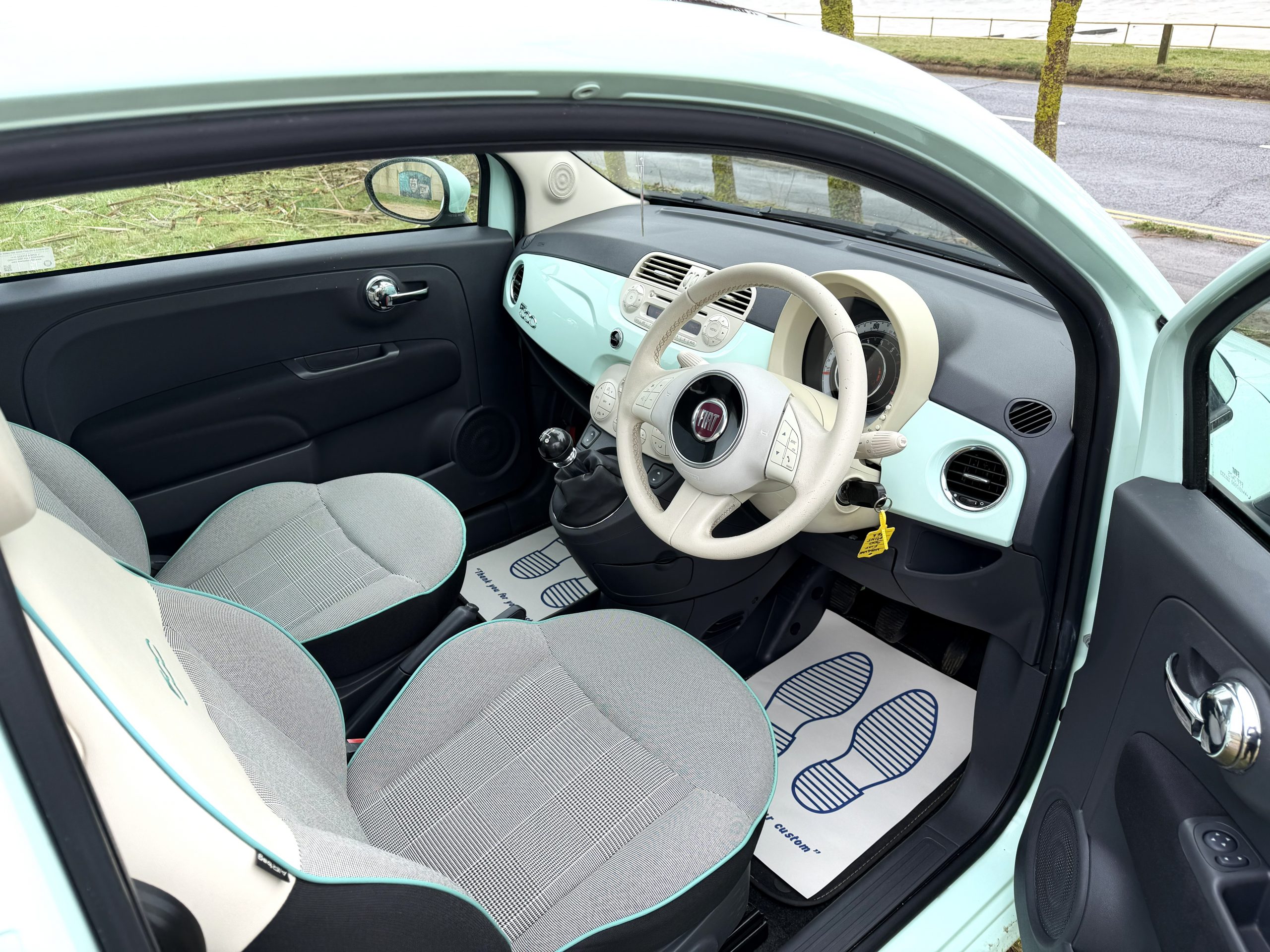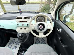 LMC Motors Presents To You This 2014 (64) Fiat 500 0.9 TwinAir Lounge Manual Finished In Mint Green With A Grey Cloth Interior With Mint Green Piping & Dashboard